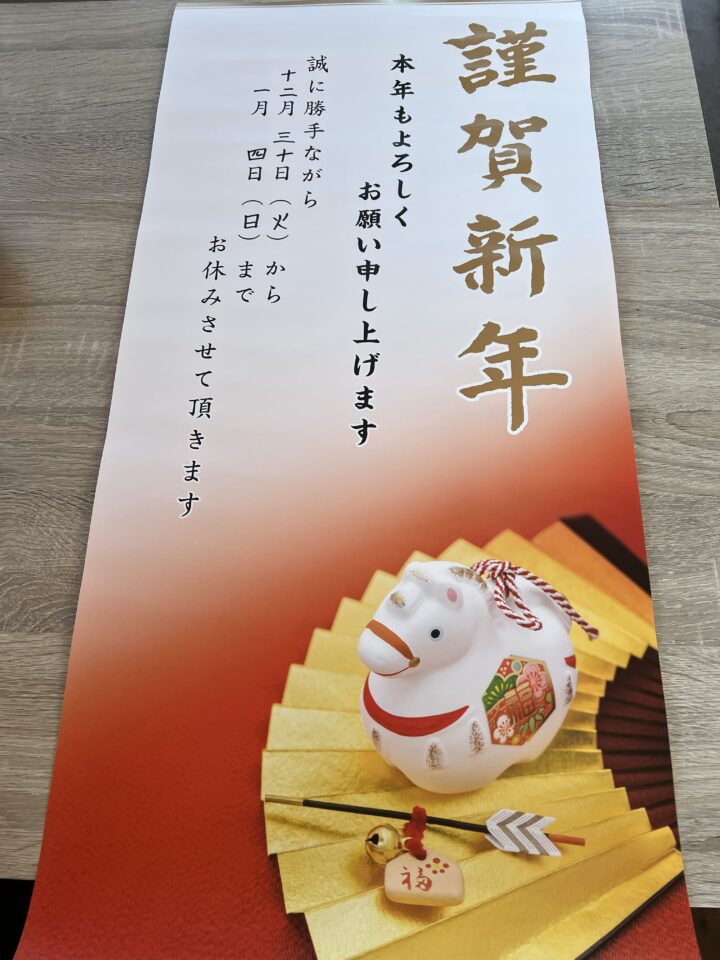ご不便をおかけしますが、12月30日(火)より1月4日(日)までとさせていただきます。